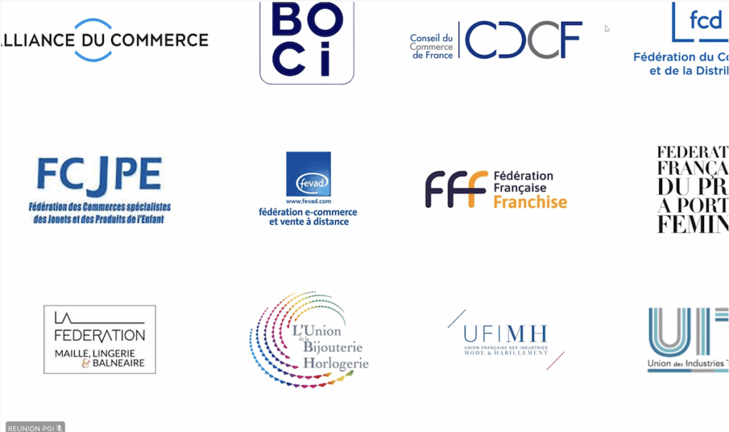 La liste des fédérations : Alliance du commerce, Boci (La Bijouterie Fantaisie, Bijouterie Métaux Précieux, Orfèvrerie et Industries Appliquées aux Métiers d’Art), Conseil du Commerce de France (Cdcf), Fédération du Commerce et de la Distribution (Fcd), Fédération des Commerces spécialistes des Jouets et des Produits de l’Enfant, Fédération du e-commerce et de la vente à distance (Fevad), Fédération Française de la Franchise (Fff), Fédération Française du Prêt à Porter Féminin, La Fédération de la Maille, de la Lingerie & du Balnéaire, Union de la Bijouterie Horlogerie (Ubh), L’Union Française des Industries de la Mode et de l’Habillement et Union des Industries Textiles.